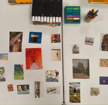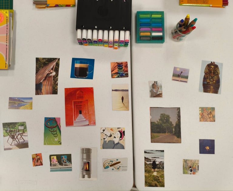 Je propose également des ateliers de Journal Créatif (en groupe) à visée non-thérapeutique. Différents thèmes sont proposés au cours de l'année.